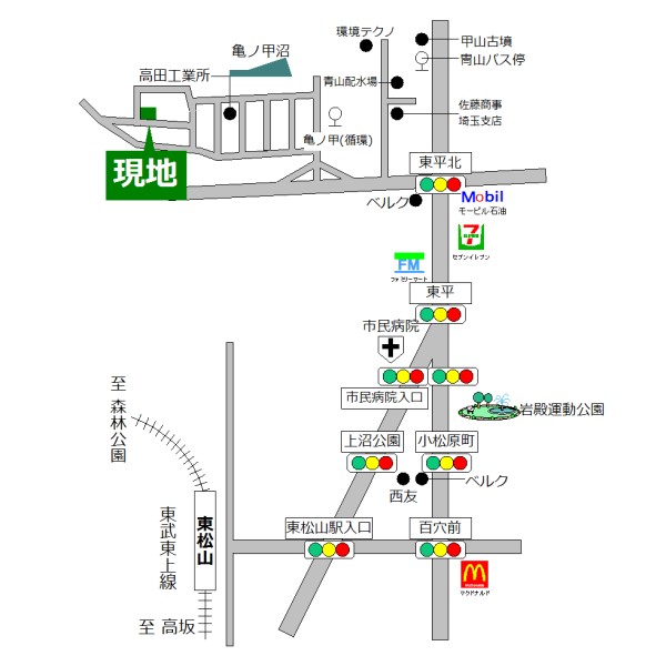最寄りの駅は東松山駅、バス乗車時間15分、「冑山」駅停歩8分でございます。
